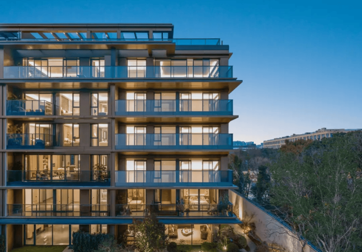 交付:精装交付,预计2027 年 9 月 28 日交房;外立面大面积铝板 + 玻璃幕墙,现代简约;社区「一轴八境」山水园林 + 恒温泳池高端会所;