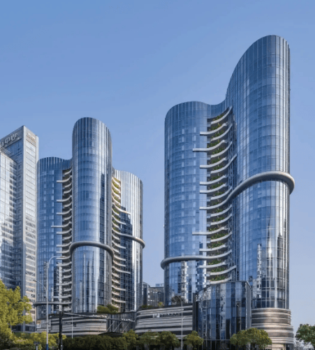 建筑形态:2 栋 27 层双子塔(流线型 “三叶草” 造型),总建面约 9.5 万㎡,仅 123 席纯大平层