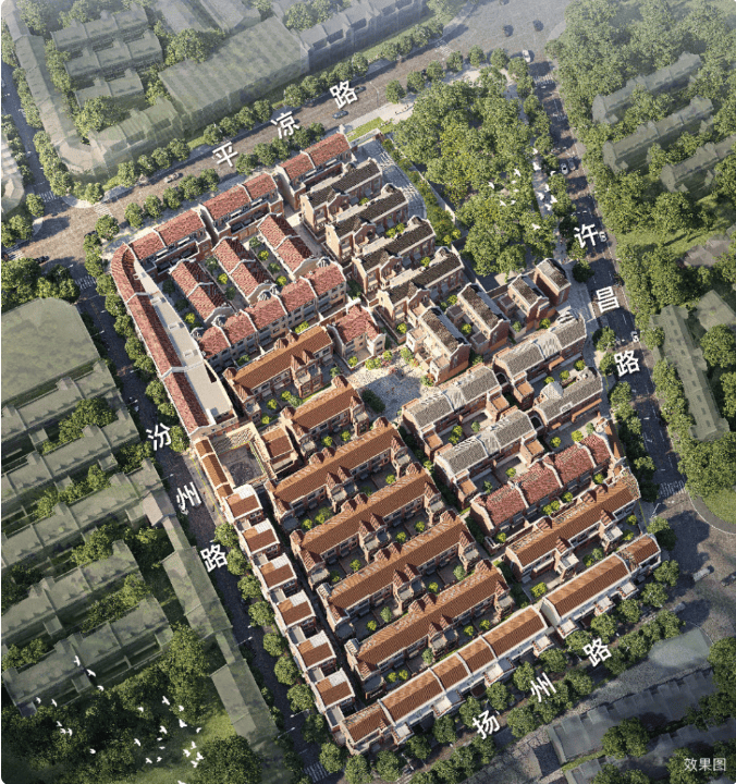 【翠湖滨江】溯源“花园里弄”的建筑形态,尊重街巷里弄的空间秩序,打造一中心、四节点的“四海一心”的里弄布局。