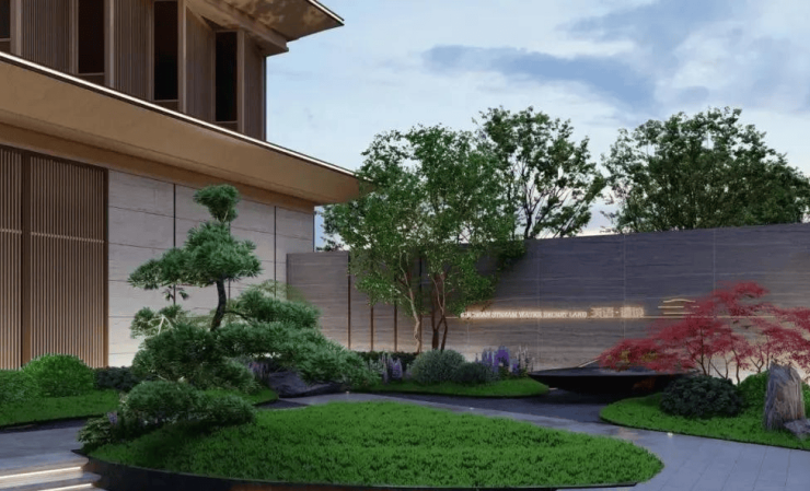 礼仪树迎门而立、叠瀑流水、光影纵横如画、庭院几许蔚然开卷、采撷悠然时光…草之形,影之趣,墙之景,归家尽享尊崇感!