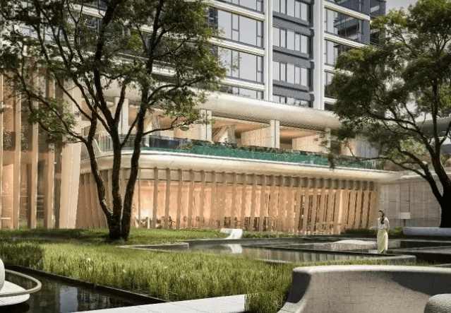 园林约6 万㎡,“一环三景六园” 立体生态,融合西溪湿地肌理,度假式园林体验