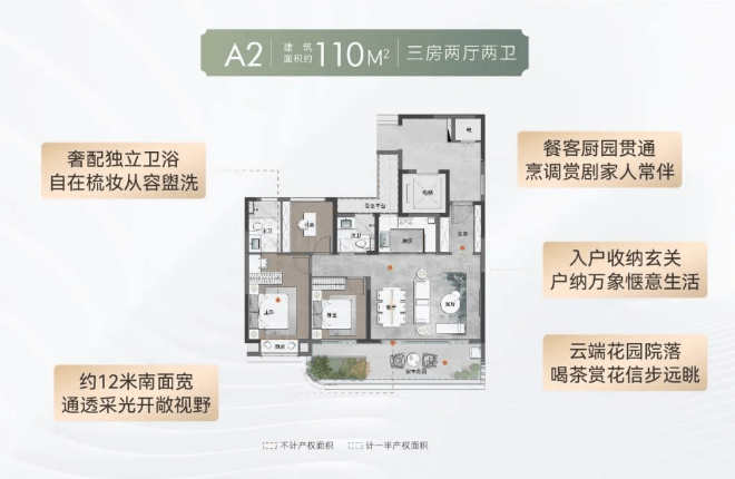 其中,建面约110㎡户型三房两厅两卫,高定奢适主卧,四开间朝南,厅堂衔接空中花园,森氧无界。建面约135㎡户型一步到位升级之选,四房格局陪伴家庭成长,南北两大花园双境瞰景,生活自然惬意。双户型仅最后一幢,收官封藏机遇不可错过。