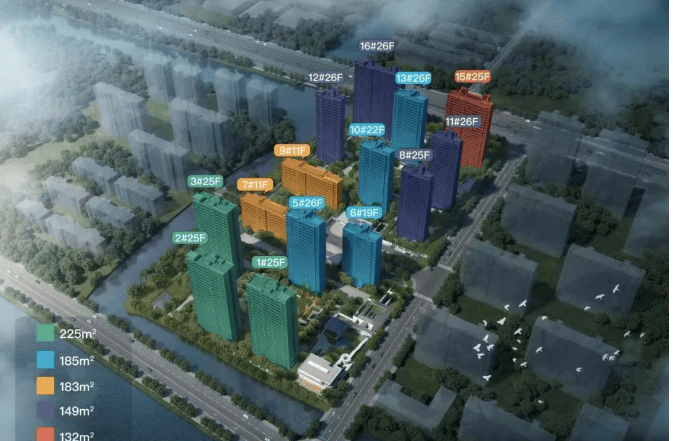 主力户型:专注纯改善设计,主力户型为 149 - 225㎡的大户型,具体来看,149㎡四房两厅两卫,约 13.8 米南向面宽,搭配约 7 米宽景阳台;185㎡四房两厅三卫,约 15.6 米南向面宽,含 270° 环幕观景阳台,主卧套房超 25㎡;225㎡五房两厅三卫,约 18.2 米南向面宽,搭配 9 米长巨幕阳台,主卧套房面积超 40㎡,兼具书房功能。