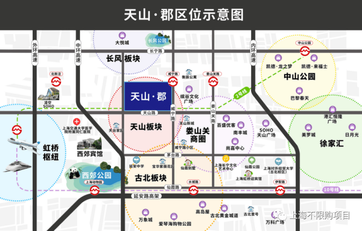 轨交:项目距离2号线北新泾站350米,搭乘轨交 2 号线 10 分钟达静安寺,15 分钟达人民广 场,20 分钟站达陆家嘴,20 分钟站达虹桥枢纽