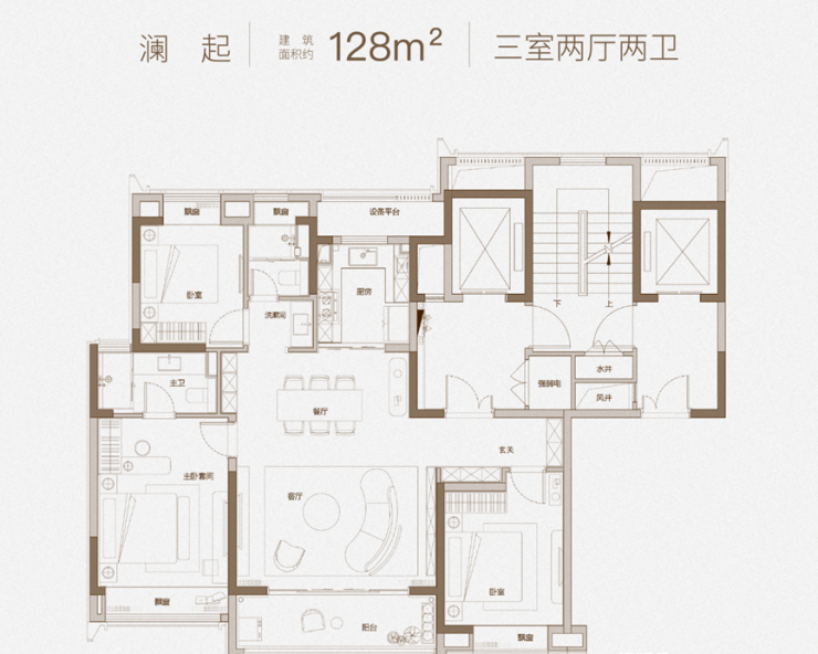 建面约128㎡三房两厅两卫户型:凤栖星澜售楼处电话:400-186-1314接通后输入8888