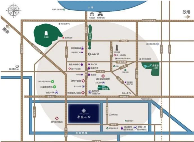 项目坐享南街、环城南路等城市主轴,直通申嘉湖高速公路鹿山枢纽和湖州高铁站,15分钟直达湖州东站(已于2022年7月动工),融入大上海经济圈,新318国道和湖盐公路贯通全境,打造长三角生活圈。随着沪苏湖高铁、湖杭高铁、如通苏湖城际等加快推进建设,湖州作为长三角中芯枢纽的地位日益凸显,快速接轨国际。