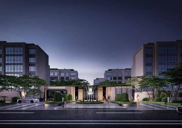 社区入口:打造南、北、西侧三大社区入口,营造归家仪式感。酒店式迎宾南主入口,约 4.5 米净空,约 30 米面宽形象展示,约 18 米进深茶色金属挑檐、法式修剪植物营造出典雅、大气、浪漫气质。仪式归家西北侧次入口,通过一体化城市界面打造,特色铺装营造浪漫法式氛围,浪漫树阵打造礼仪归家仪式感。