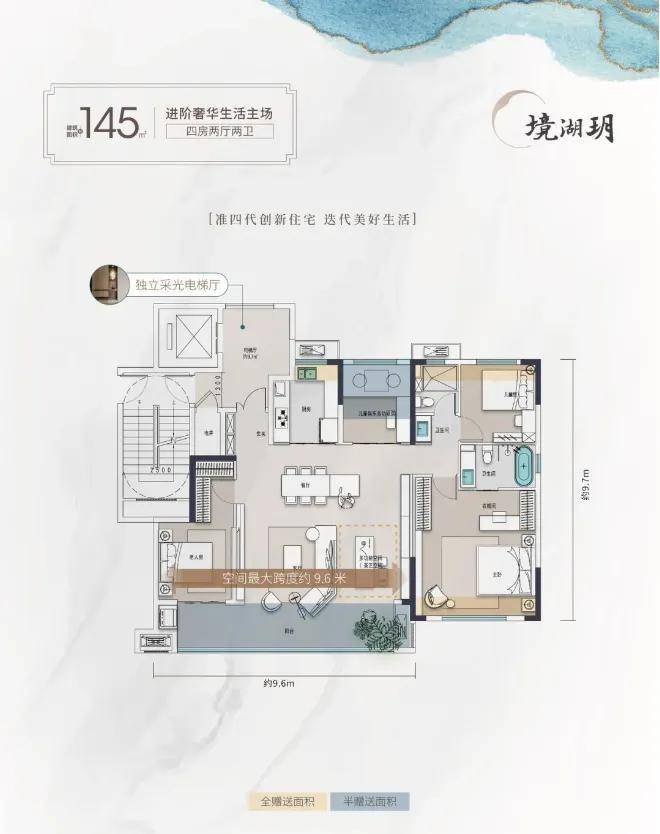 独立电梯前室+约9.5米跑道式阳台!