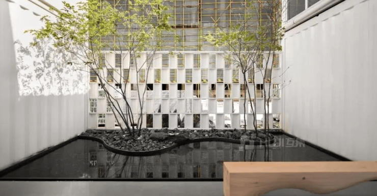 东西两段结构设计融合中,东部作为接待入口区域,半开放式走廊与光线充足的开放式微景观形成鲜明的对比,带给人们意想不到的惊喜与反差感。西部的集中办公区成为了城市人的缩影。