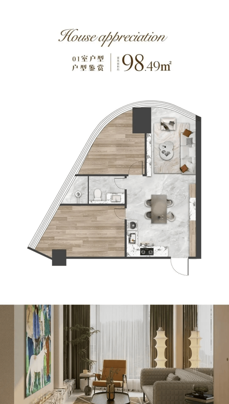 户型信息:有一房、两房、三房精奢户型,建面约 39-113㎡