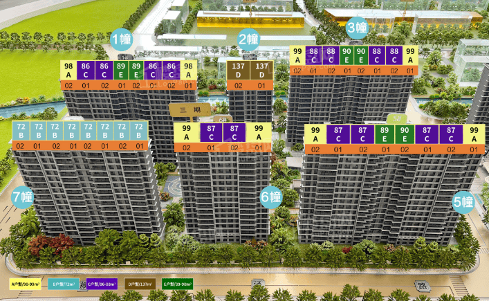 楼盘户型:6种户型,建面:70-98㎡ 3室2厅1卫 (建面:88)
