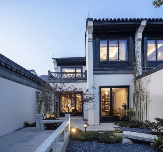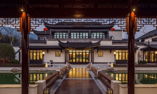建筑风格:采用纯粹的中式建筑风格,黑、白、灰三种色彩排列组合,马头墙、小青瓦等元素交融,依山就势,黛瓦白墙,雕镂飞檐,景观园林演绎国风水墨的诗情画意,与溪口山水的古典秀美神形相契。