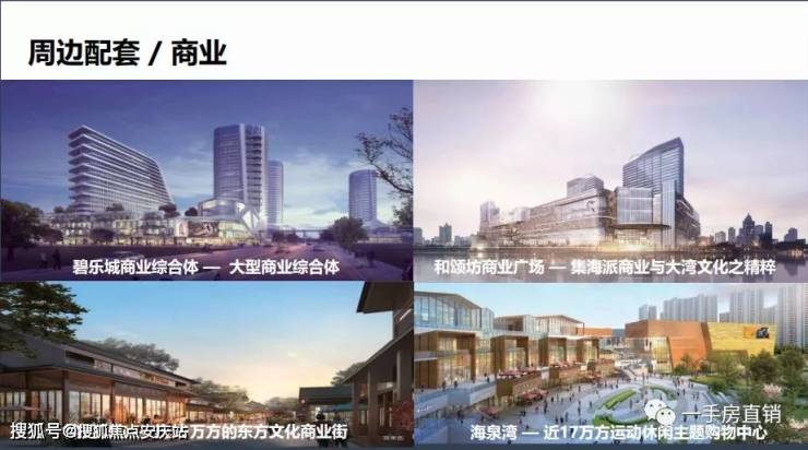 商业:项目自带特色商街,周边碧乐城商业综合体、合颂坊商业广场、海泉湾运动休闲主题购物中心(在建)、锦绣东方文 化商业街区(在建)等商圈环伺