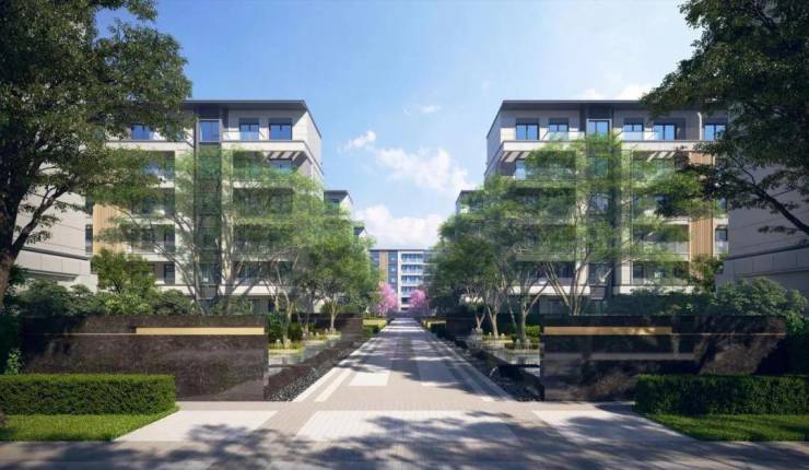 西门入口增设特色水景景观,都说“遇水聚财”,寓意很讨巧。东西横向中轴,选用5至6米高的樱花树,全冠移植,打造凤屿山河的樱花大道,未来业主不用去鼋头渚,也能一赏春色如许。