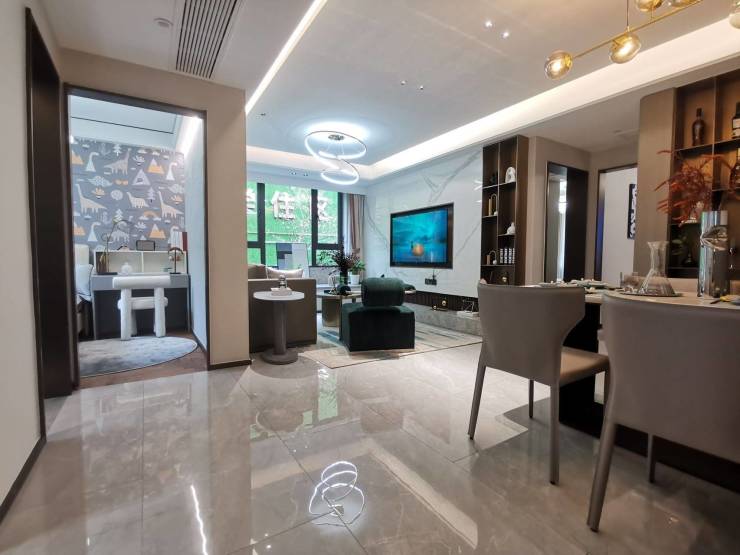 现代简约建筑风格采用真石漆外立面搭配大面积玻璃窗,线条简洁明快,高层与别墅分区布局,形成高低错落的天际线。别墅采用独门独院设计,部分户型配备下沉式庭院与露台,拓展空间利用率。