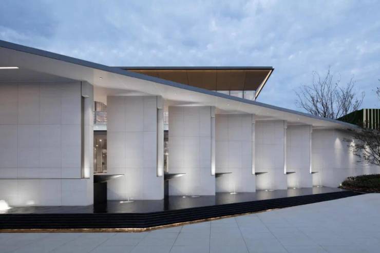 门廊顶部围合空间,营造步入内部空间前的完整仪式感,暗示空间的转换,从外部环境向建筑过渡。