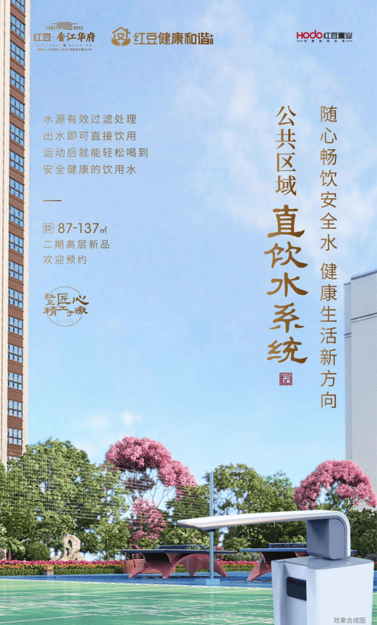 在社区建设方面,红豆·香江华府结合社区跑道和运动中心,特为业主精心设置公共区域户外直饮水系统,水源经过有效过滤处理,去除水中可能含有的病毒细菌及污染物质等,出水即可直接饮用。还有针对老年或者残障人士设计的防滑坡道;首层门厅及门廊、走廊设无障碍扶手、护角等设施;儿童活动设施的圆角设计;建筑内公共区空间地面采用防滑材料……从多种人性化角度出发,考虑实际生活场景,让所有居者都能体验到更好的生活。