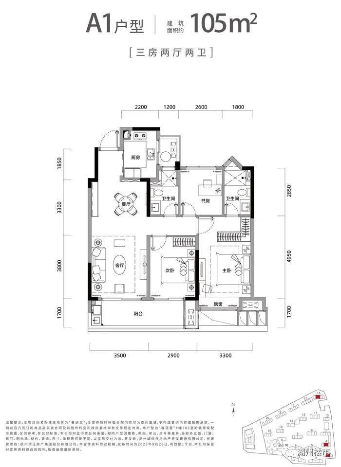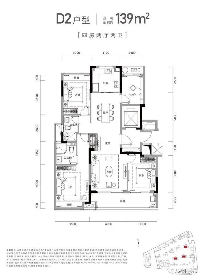 滨江春语里高层户型建筑面积约105-139㎡,洋房户型建筑面积约149-169㎡。