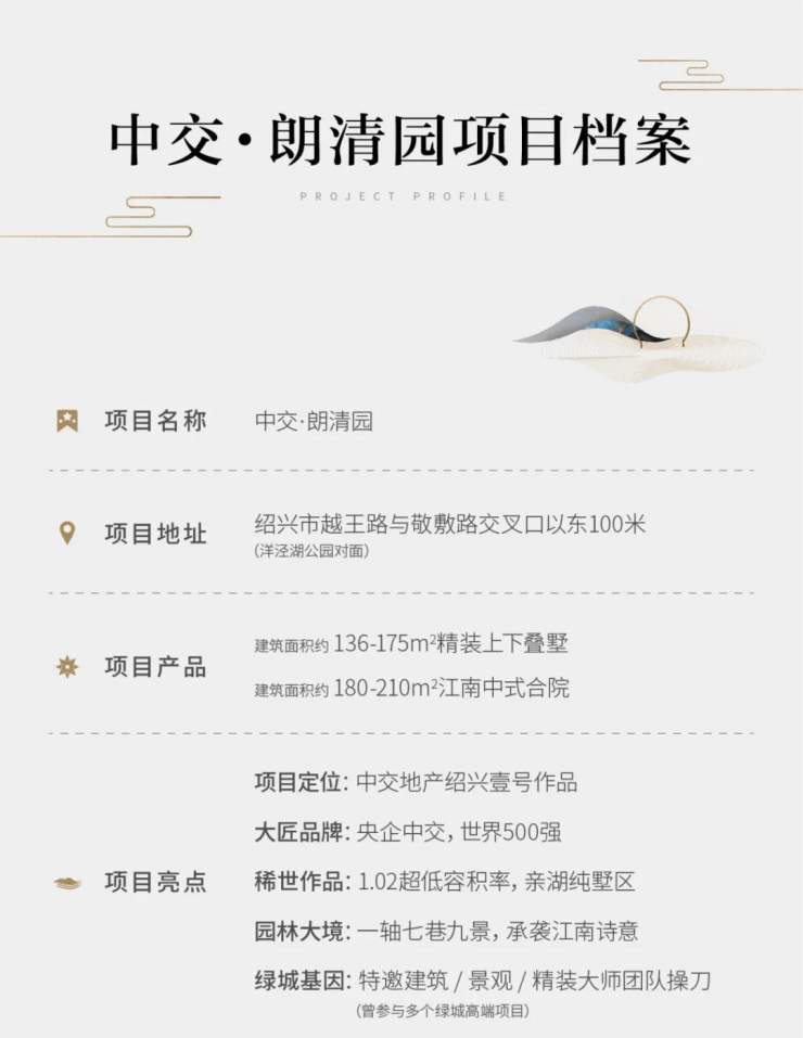 “引江入园,与清风共坐对饮;缩影绍兴,于半亭畅叙幽情。”中交·朗清园,以1.02超低容积率,打造建筑面积约136-175㎡精装上下叠墅和建筑面积约180-210㎡江南中式合院两大产品,绍兴罕见低密亲湖纯墅区,低密湖居,别无他墅。目前,湖居风雅生活馆现已开放,恭迎品鉴!