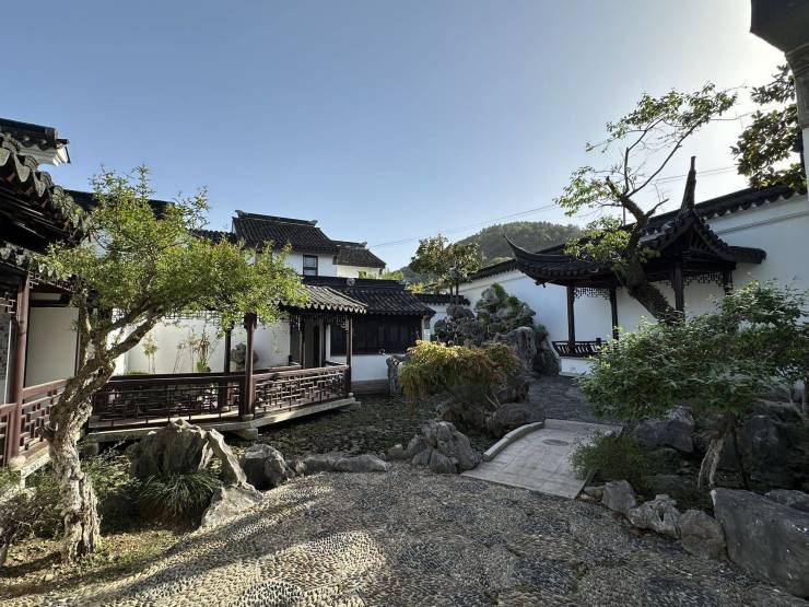 建筑规划:小区为别墅区,整体是简约大气的风格,外立面由灰色和白色涂料组成,有一种水墨画的古典美。小区内有花园、林园、水池等景观,园林绿化维护较好。