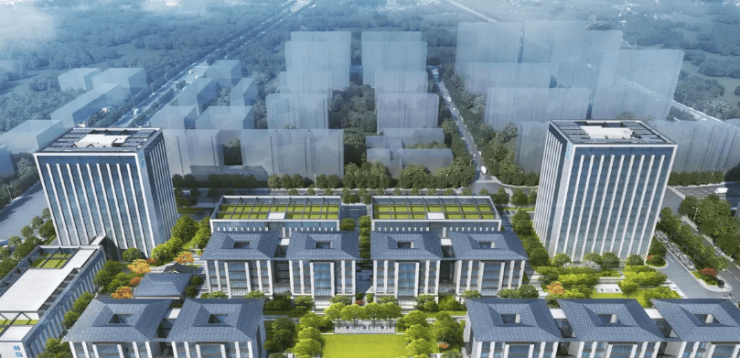 规模指标:占地约48544㎡(72.69 亩),总建面约11.24 万㎡;容积率 1.6、绿化率 35%;共 9 栋楼(4–5 层花园独栋 + 高层办公);现房(2023 年 8 月交付),毛坯 / 公共部分精装。