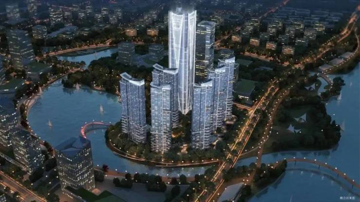 立面与地标:现代流线型超高层设计,大面积环幕玻璃 + 金属线条,249.9 米超塔为相城天际线地标,悬浮式露台搭配环秀湖景,辨识度极高。