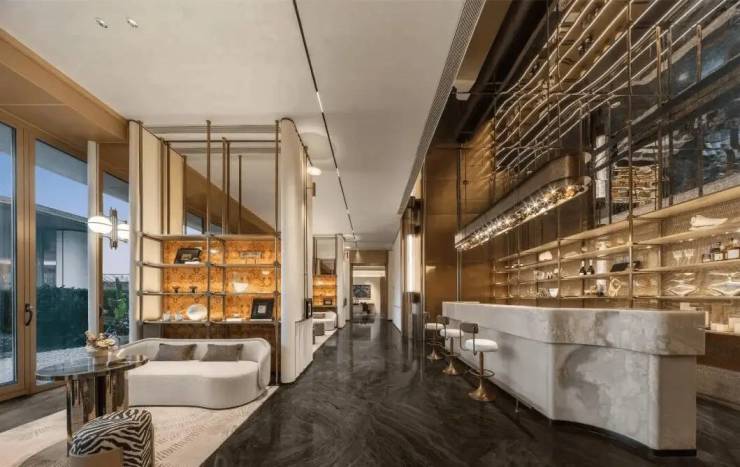 社区:约 52 米宽的主入口大门,配户外泳池、阳光水院、五大主题架空层(会客厅、童玩区等);精装标准包含美的中央空调、博世地暖、老板厨电等。