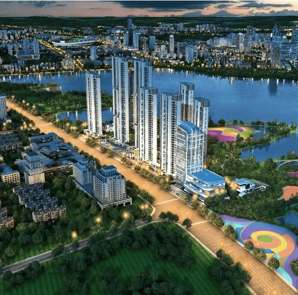 景观设计:以半岛地形,拥有 10 万方滨湖市政花园,3300 亩柴泊湖风景,270 度观湖视角,湖居特色突出。