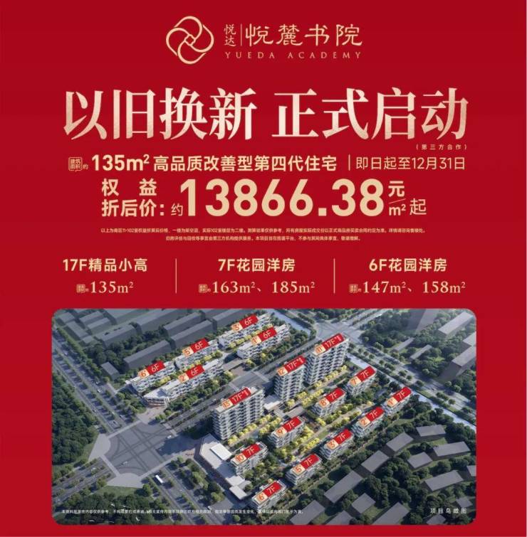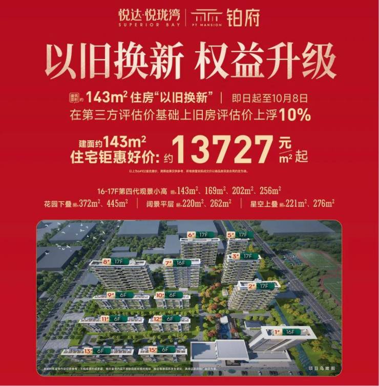 政策暖心,直击痛点。针对改善客群的核心关注点,铂府推出约143㎡户型“以旧换新”专项政策,旧房评估价上浮10%,并以约13727元/㎡起的诚意价格,切实降低换房门槛。悦麓书院同样响应,为约135㎡户型提供权益折后价约13866.38元/㎡起的优厚条件。