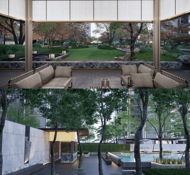 园林景观:以元代画家倪瓒画作为蓝本,打造 “三重归家礼序” 景观,包含叠水景观、星空草坪、樱花步道等八大主题园区,营造出东方风雅的园林氛围。