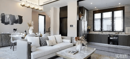 户型设计:合院户型有阔绰层高,约 5.6-5.8 米挑空地下室,一层建筑层高约 4.25 米,二层建筑层高约 3.75 米,约 10.7-12.5 米大面宽,三开间朝南设计,还有超大套房主卧、主卫双台盆等设计。