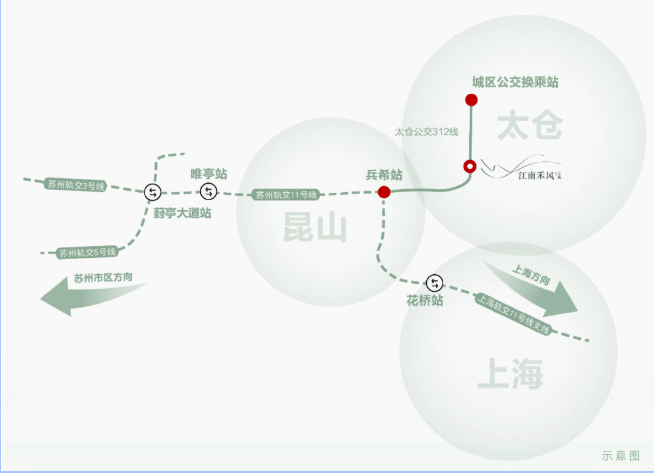 交通:步行约 58 米即达江南禾风公交站(312 路),可衔接苏州轨交 11 号线;自驾 5 分钟上 G15 沈海高速,30 分钟达上海嘉定;距太仓南站约 4 公里,高铁 30 分钟直达上海虹桥。