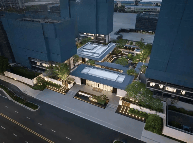 建筑特色:外立面采用昆石同色石材搭配现代铝材、高透玻璃,塔冠设计融合中式屋檐与极简美学,彰显东方雅奢气质。