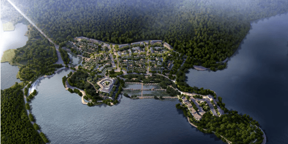 引清涧入社区,以沿湖步道框镜湖山之美,阔藏聚落广场、林间集市、度假酒店的闲情逸致。背靠山林,坐拥观湖,在保留原始树木的基础上,以山之韵林之美围合自然中庭,将四季藏于园境。