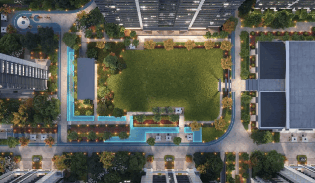 景观设计:设置七大主题景观区,包括主入口 “水木雅庭” 酒店大堂式入户景观、小区 “水木之窗” 核心景观区、中央 “芳草之地” 阳光大草坪等。