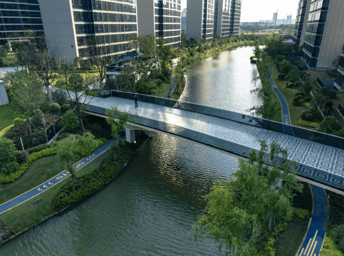 滨水景观:独享约10000㎡滨水景观带,包含3000㎡叠水景观、50个泉涌、双层“游艇式”观景台,以及600米滨水步道直通双溪湖公园,营造出“公园家”的诗意生活场景。