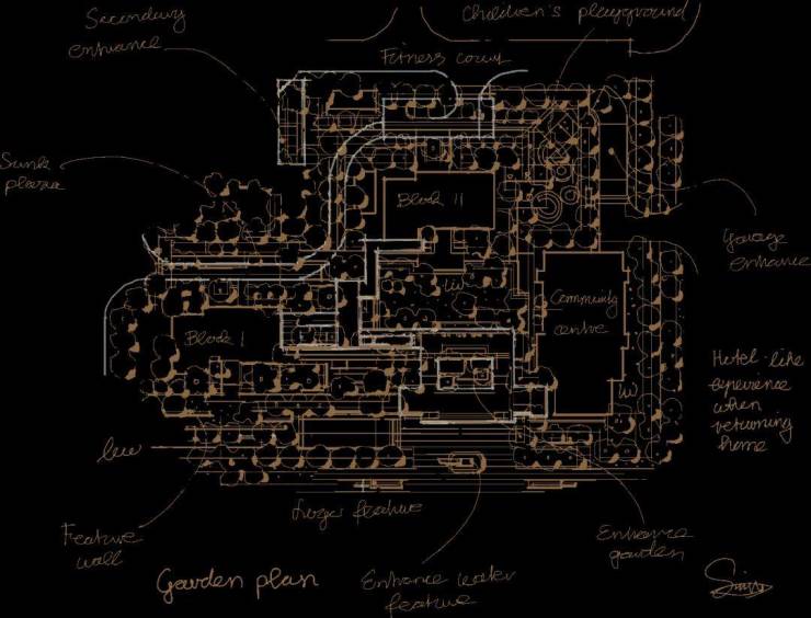 顺着风雨连廊走过中庭,除却主要的归家动线功能之外,更赋予它游廊的作用,令每一次归家和在社区中的漫步都是视觉和心灵的享受,并可随心遁入生机盎然的花园。