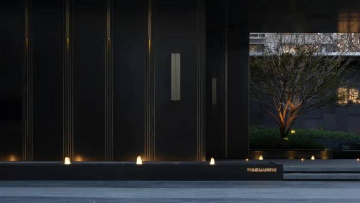 主入口门头是城市进入“家”的第一个昭示面,暗色系的金属铝板结合厚重的石材质感使得“酒店宅园”的形象浑然天成,奠定了沉敛精致的主调气质和空间氛围。