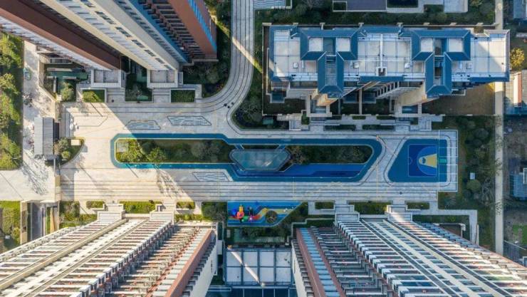 整个社区好似一场多层梦境,三级庭院,依次展现,每抵达一处庭院都像是开启了一次新的仙游。其实星河丹堤从正门口就开始了它的叙事,两侧带有树池粉绿相间的植物,预示了即将到来的满园的馥郁芬芳。