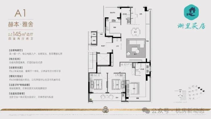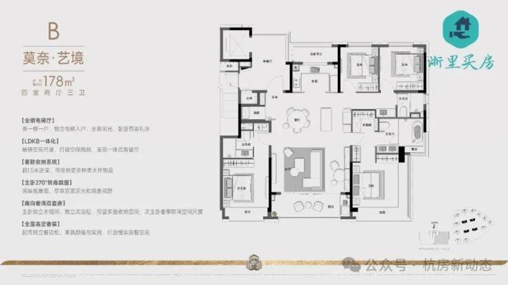 270°全明电梯厅、奢阔大四房南向双套房、中西结合两大餐饮中心、270°无边界艺术主卧、270°观景飘窗奢装艺术主卫、全屋精细化收纳,挚献杭州塔尖奢赏