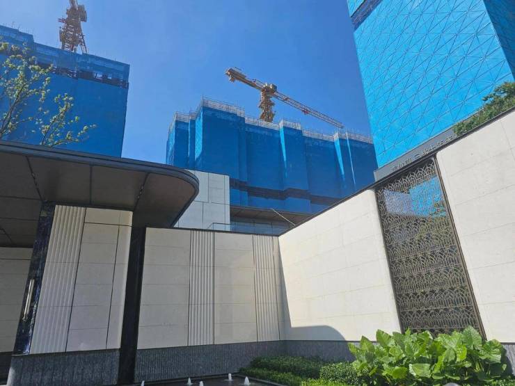 社区指标:总占地约 6.8 万㎡,总建面约 30.91 万㎡;容积率2.2,绿化率 35%;规划 14 栋(26 层高层 + 6 层叠拼),共 915 户;车位配比 1:1.3;人车分流;自带约 2500㎡高端会所(含双泳池、健身、私宴);立面石材 + 金属线条 + 大面积玻璃。