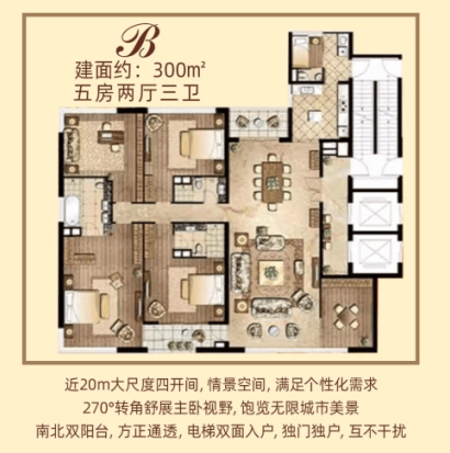 主卧270度转角落地采光视野,南北双阳台,