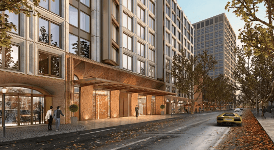 建筑设计:汲取外滩风貌建筑精髓,采用折衷主义风格,融合石库门元素与现代工艺,如波多尔红石、连续罗马券等,打造富有Art Deco美学的建筑外观,与外滩万国建筑群相得益彰。