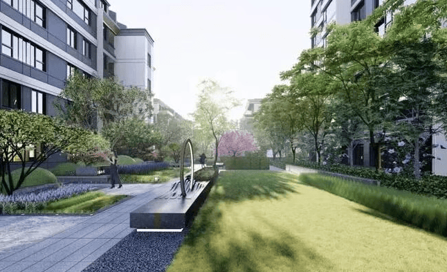 景观设计:以 “山庭、曲水、松茂” 为元素,打造 “一轴三境五景” 景观体系,社区内有悬浮茶亭、儿童乐园等休闲空间。