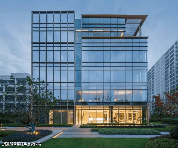 【建筑风格】:采用现代简约的手法,内部采用超白高透玻璃,外立面的玻璃幕墙与大面积金属线条,营造未来感