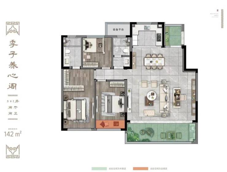 建面约142㎡三房两厅两卫:独立入户厅;横厅设计,餐客大宽厅;LDKG一体,南北通透;动静分离更彻底。