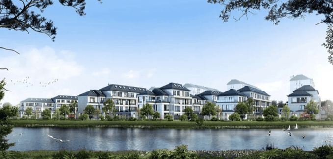 规模:占地约 3.7 万㎡,容积率仅1.25(超低密),绿化率 35%;新中式立面(石材 + 涂料),双面环河,“一巷两湾・五庭九弄” 江南园林景观