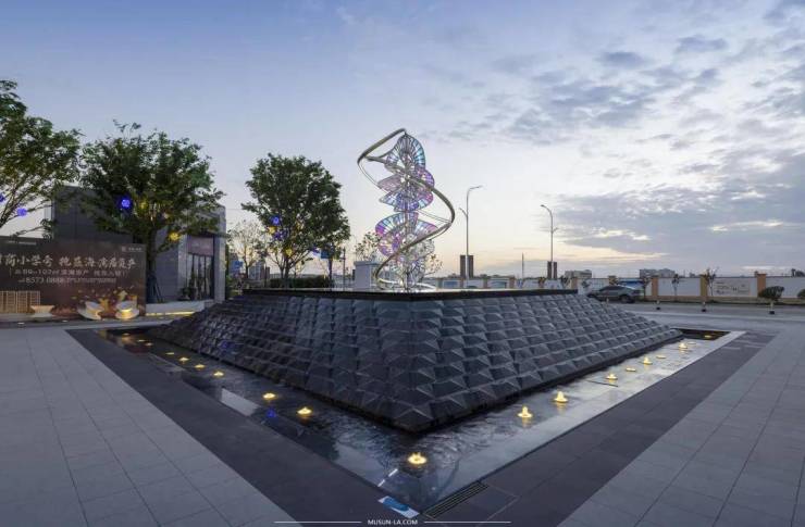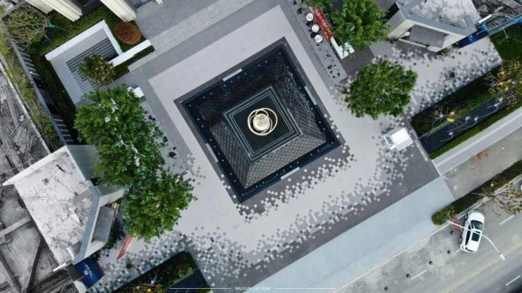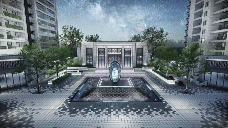设计师以极致现代的方式去雕琢与精粹,采用相同数量的相似几何形状界面的排列组合,并科学合理的分割与捏合每个空间,产生层层叠叠的视觉效果,整体设计极具时代感与前瞻性,成功打造出钻石般璀璨闪耀的景观空间。