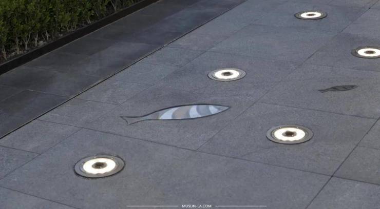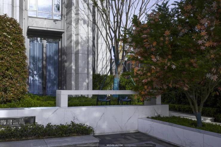 铺地形式在整个场地得到延续,成为设计语言的杳杳余音,艺术与灵动的形态宛若浪花在掌心退去,掬起剔透水光中泛起的泡沫,那是浪花留下的最后乐符。