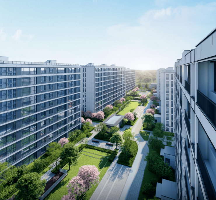 楼间距:南北楼间距 34-40 米,东西景观轴超 250 米,保障了采光与私密性。